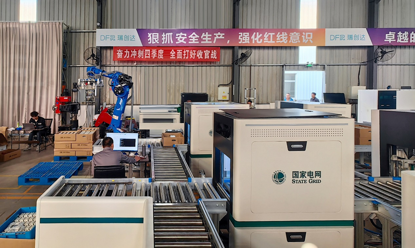電力智能倉儲設(shè)備生產(chǎn)制造車間,正在為國家電網(wǎng)進(jìn)行設(shè)備調(diào)試